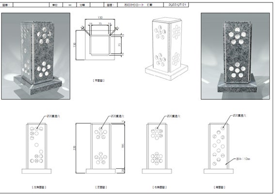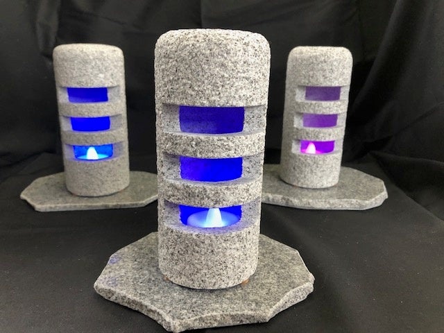 協賛するはやしばら有限会社(代表取締役 林原克嘉)は2022年7月よりRENOプロジェクトを発足しました。石あかりロード開催にあたり、リノプロジェクトでは、これまで拝んできたお墓を再利用して、オブジェを製作し、新たな供養の形を提案。その製作品イメージを石あかりに出展しています。ぜひ、実物を見に来てください。