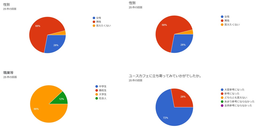 この度の「学園祭」のような幅広い年代層の方が気軽に足を運ぶ場所とユースカフェの親和性は高く、より多くの方々へ性に関する正しい知識を提供できるための方法として非常に手応えを感じました。