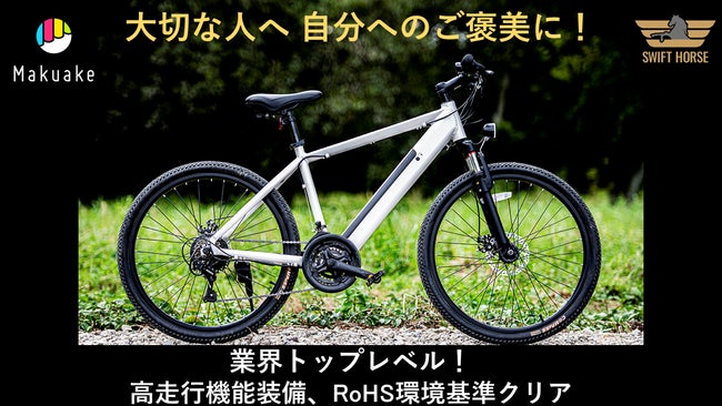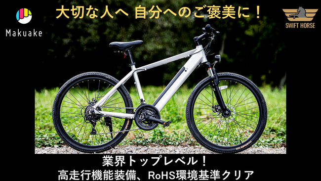 福田国際株式会社では、スポーツサイクルとしての高い走行性能(前3段・後7段変速)と電動アシストシステムをハイブリッドさせたスポーツ電動アシストサイクル(e-Bike)、ブランド名 「SWIFT HORSE」を、応援支援サービス「Makuake」において発売しています。