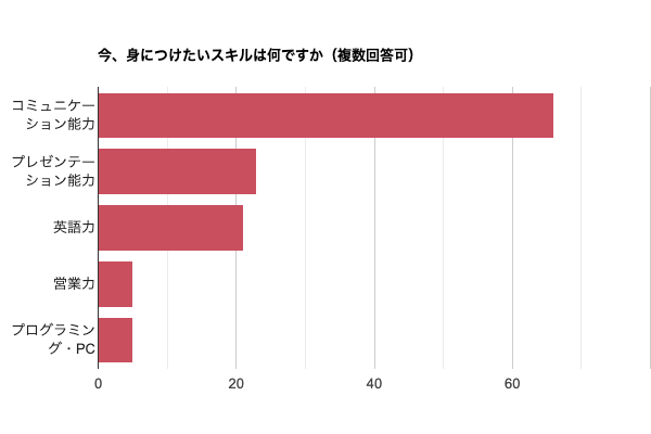 また、プログラミングを学びたいと答える割合が少ないなど、汎用性の高いスキルには回答が集まる一方で、専門性の高いスキルを求める生徒は少ないようです。