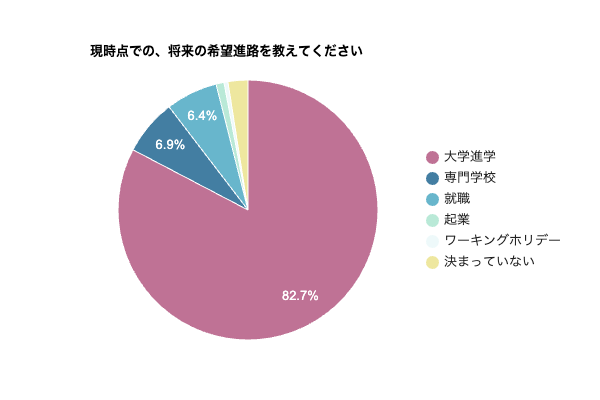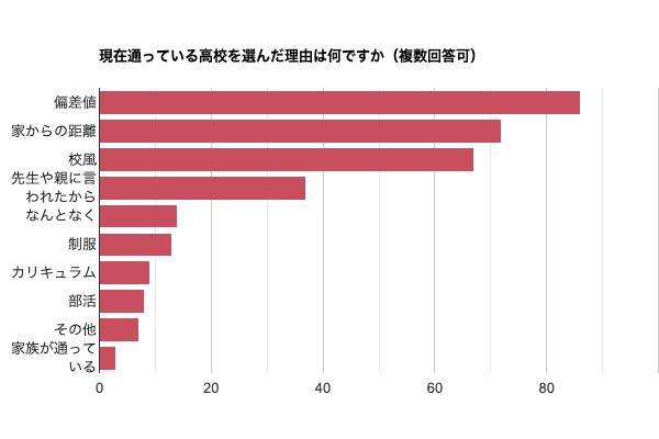 また回答者の25%が「親や先生に言われたから」や「なんとなく」を選択しており、生徒本人で高校選択をしていない割合も明らかになりました。