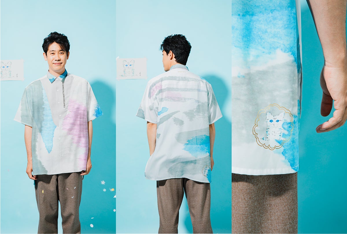 「雨ね…初夏シャツ」19,800円(税込)森本千絵さんがデザインした夏にピッタリ、涼しげなアートシャツ。