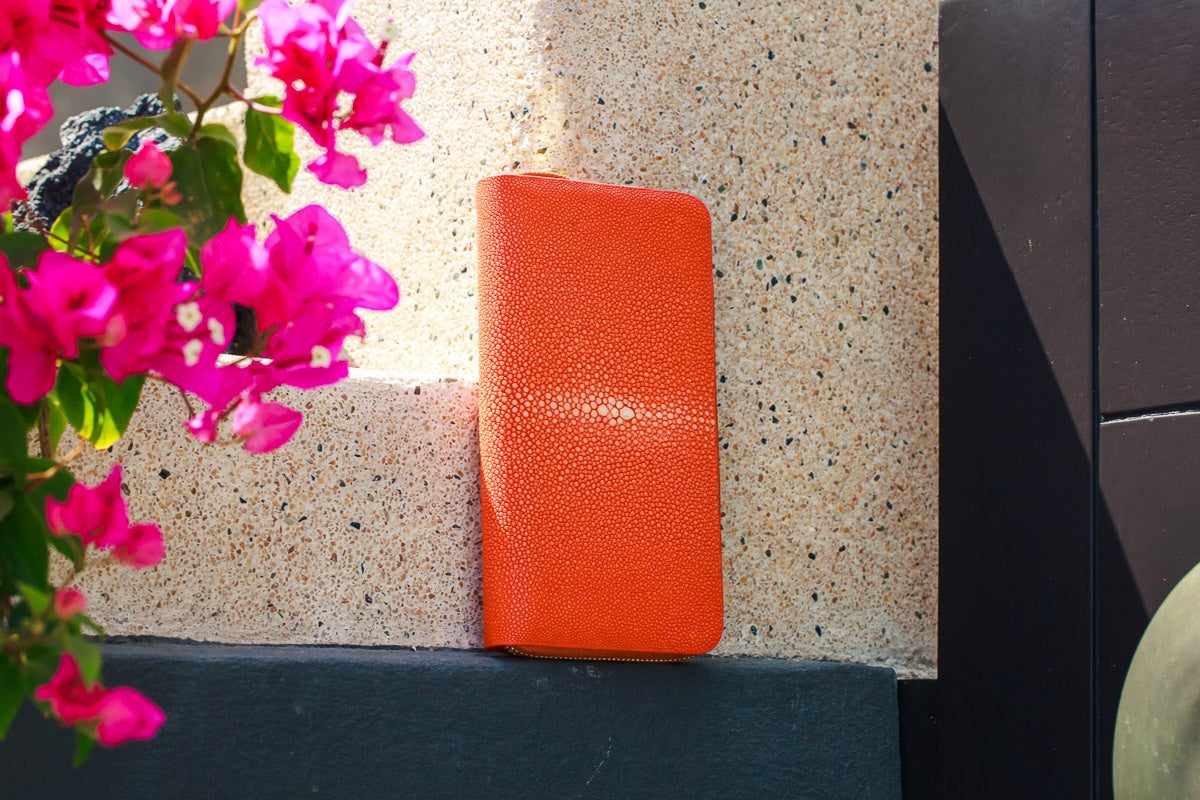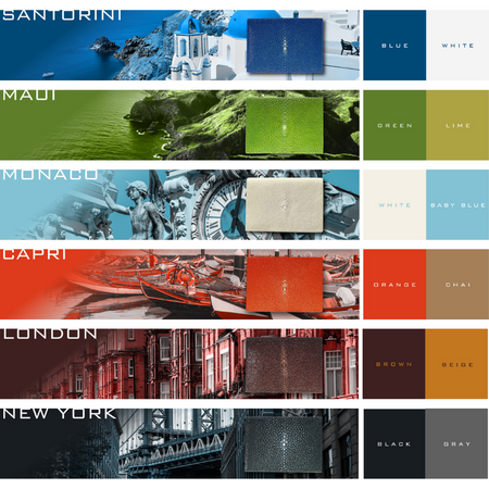 LONVAが世界中を旅して出会った、美しい風景や華やかな世界。あの時、あの場所で感じたインスピレーションをガルーシャ(エイ革)の輝きと、個性豊かなカラーリングで表現しています。