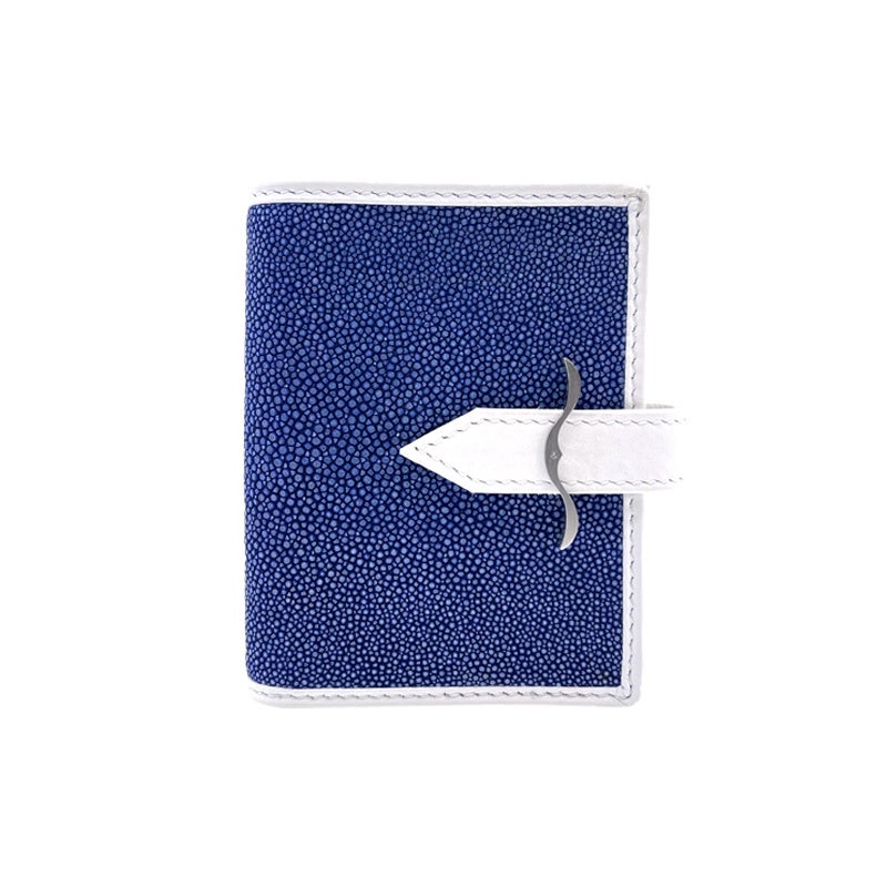 アイコニックなガルーシャ(エイ革)とカウレザー(牛革)で仕立てた「ミニ・ウォレット」。使いやすいサイズのデザインに3つのカードスロット、紙幣用コンパートメント、ボタン式コインコインポケットを備え、機能性も抜群です。ブラックカラーのLONVAバックル、都市からのインスピレーションを表現したバイカラーも魅力的。