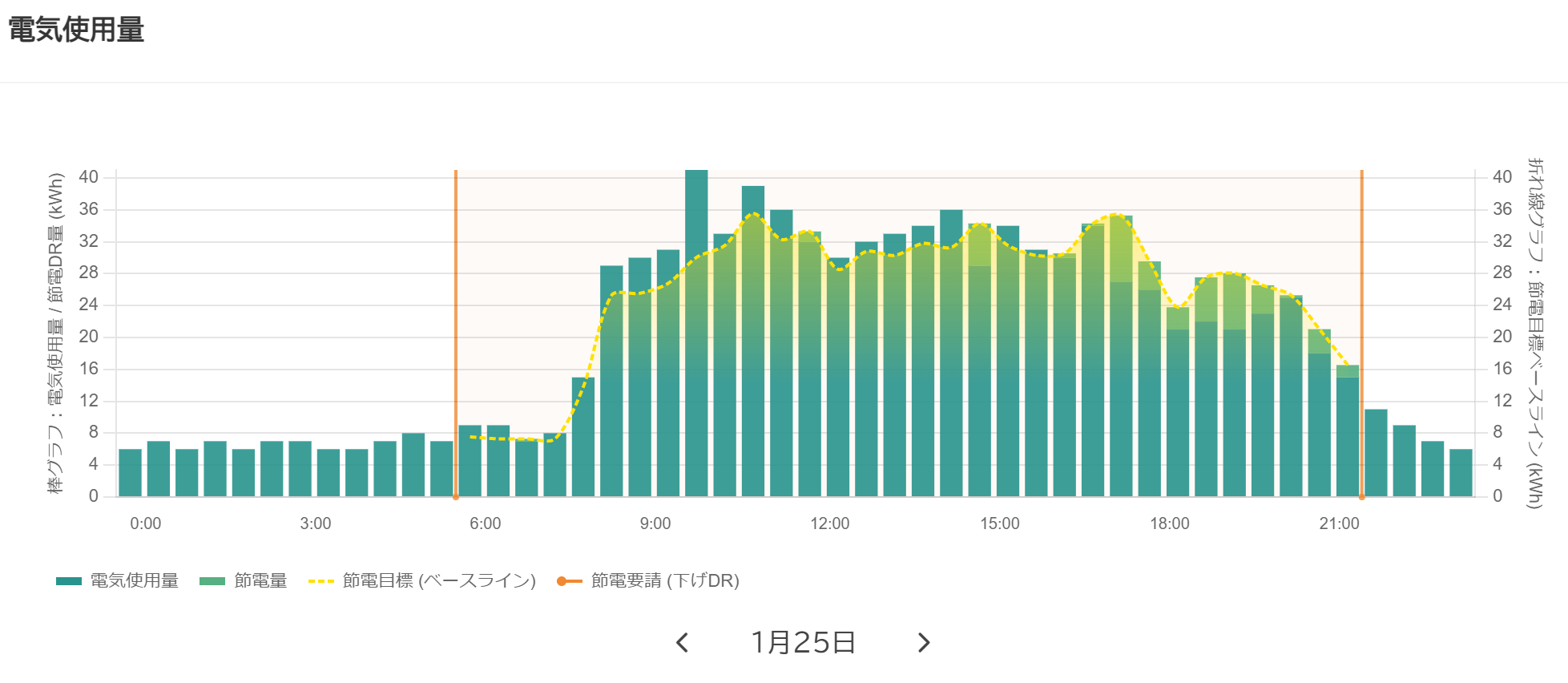 また、電力使用量や節電量の見える化にも取り組んでおり、需要家と小売電気事業者の方々にデマンドレスポンスを身近に感じていただくことが可能です。