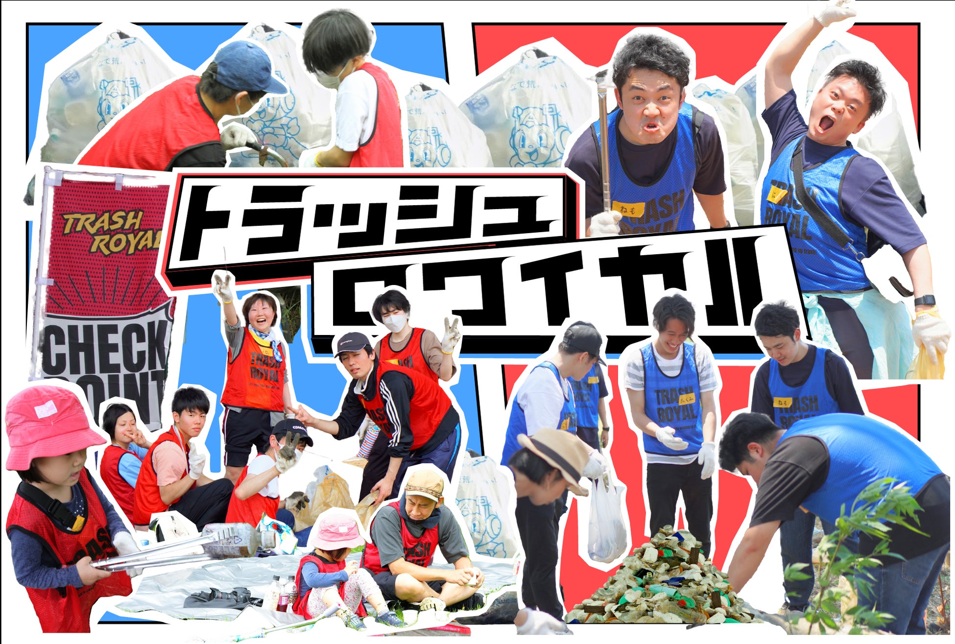 イベントの進み方あらかじめ赤と青の2チームに分かれて、最終的に拾ったゴミの量×ペットボトルの本数で競います。