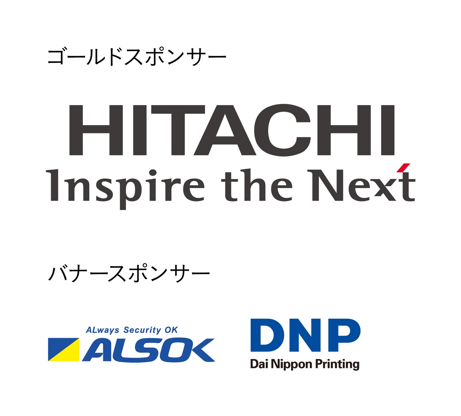 新しいスポンサーが確定いたしました。ゴールドスポンサーに株式会社日立製作所、シルバースポンサーにアマゾンウェブサービスジャパン合同会社、バナースポンサーに綜合警備保障株式会社(ALSOK)、大日本印刷株式会社にご就任いただくことになりました。今回、スポンサーになっていただきました企業の方々とともに本イベントを盛り上げていきます