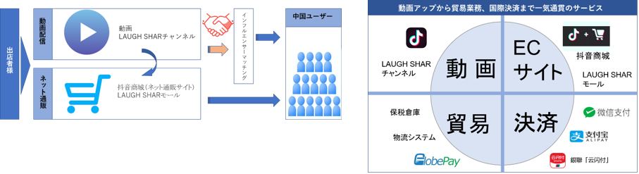 個人事業主様、中小企業様が抖音商城(ネット通販サイト)内の LAUGH SHARE shopに出店すると、アウトバウンド事業をスピーディーに開始できます。