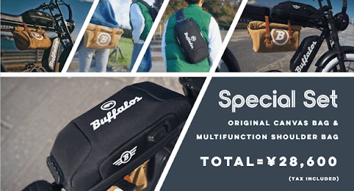 ・多機能な施錠付き防水性キャリングバッグと最高級のオイルド帆布バックをセットで同梱します。機能性とデザイン性に優れたバッファローズ専用のオリジナルバッグです。