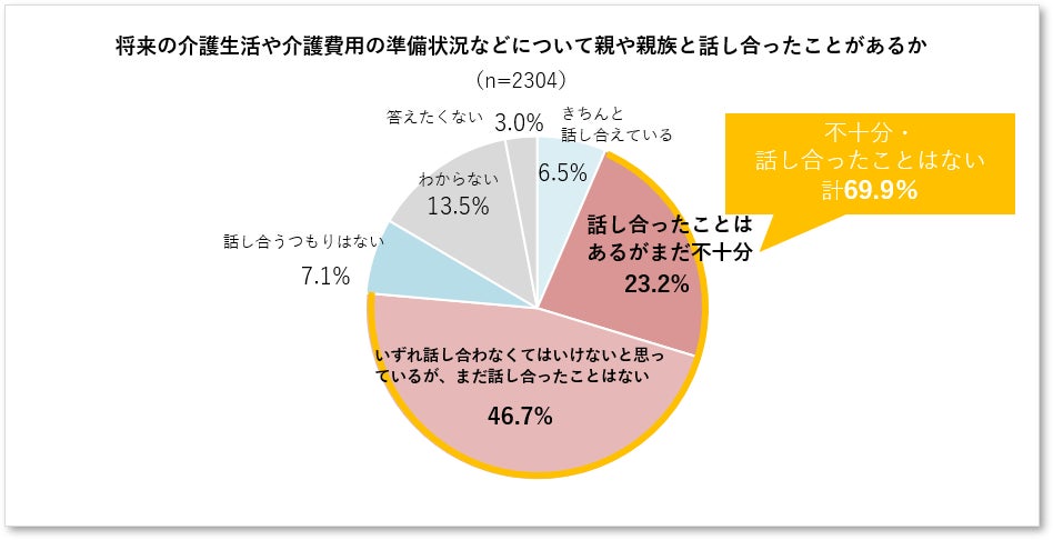 - 親に介護が必要になった際の対応は「親や親族と十分に話し合えていない」が約7割。