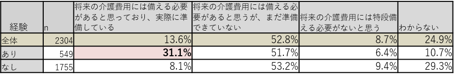 【介護経験の有無別】
