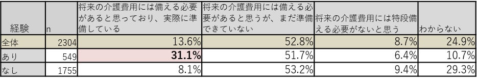 介護経験の有無別では「経験あり」の人のほうが明らかに準備が進んでいる。