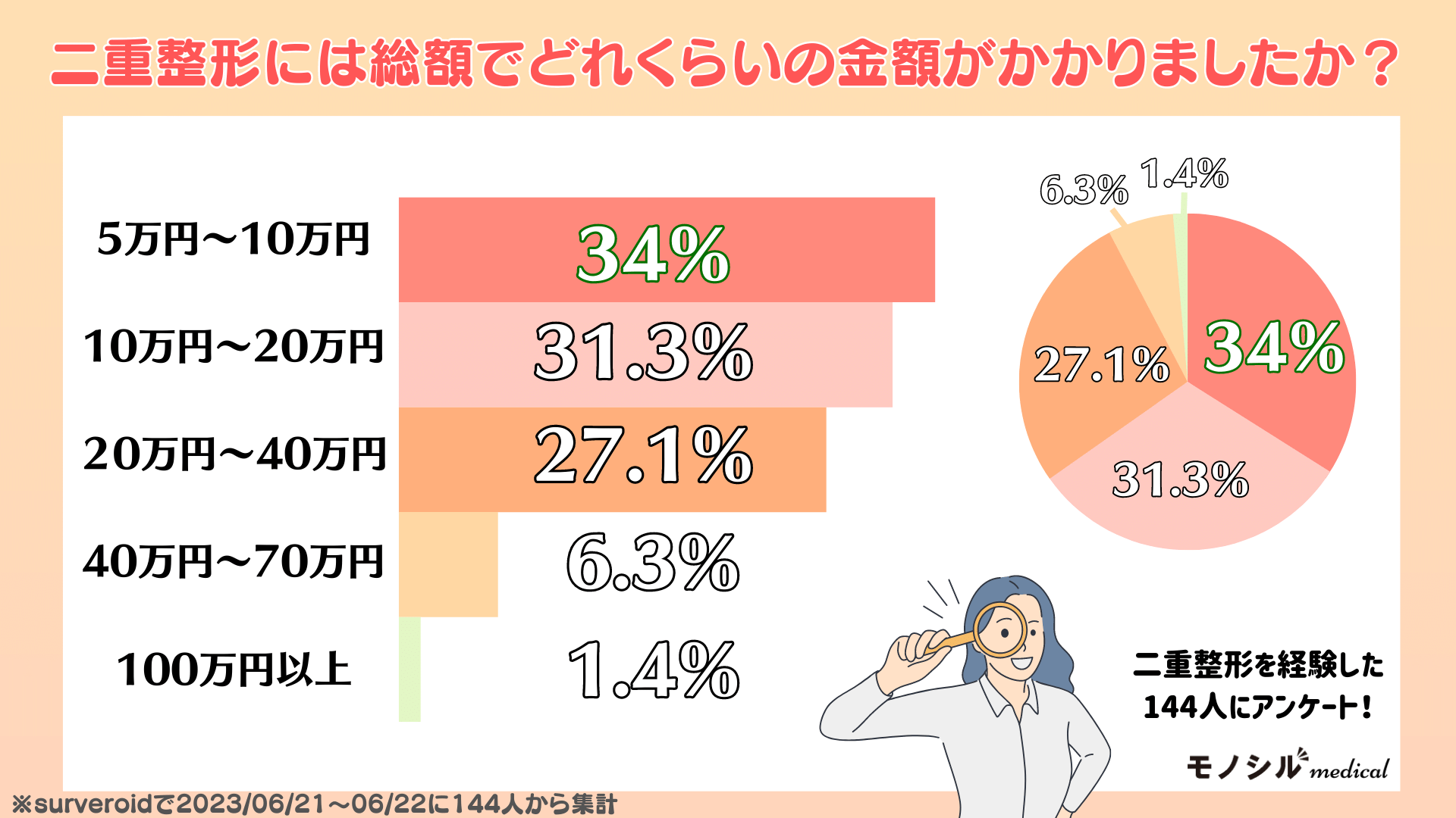 ②二重整形には総額でどれくらいの金額がかかりましたか?