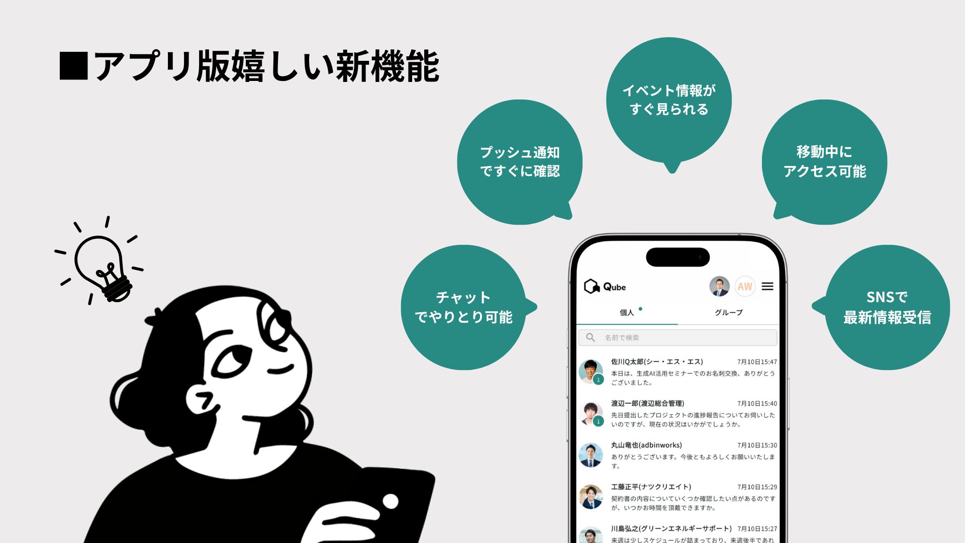 アプリを利用することで、重要なメッセージやイベント情報をリアルタイムで受信し、迅速に対応が可能になることにより、移動中や外出先でも快適に「Qube」を活用でき、アクティブユーザーの増加が期待されます。