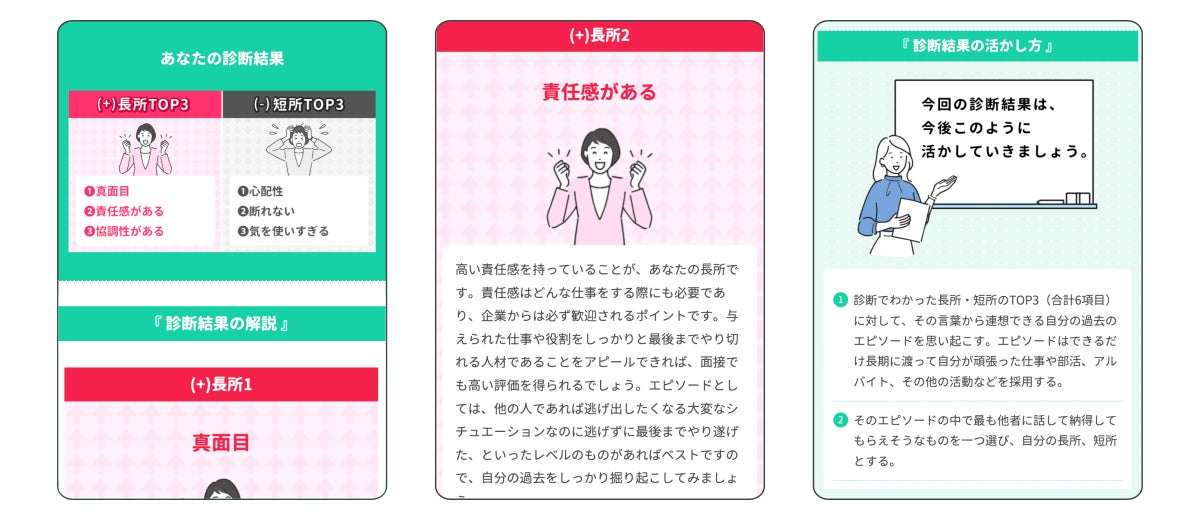 長所と短所のTOP3がわかる就活/転職向け診断ツール
