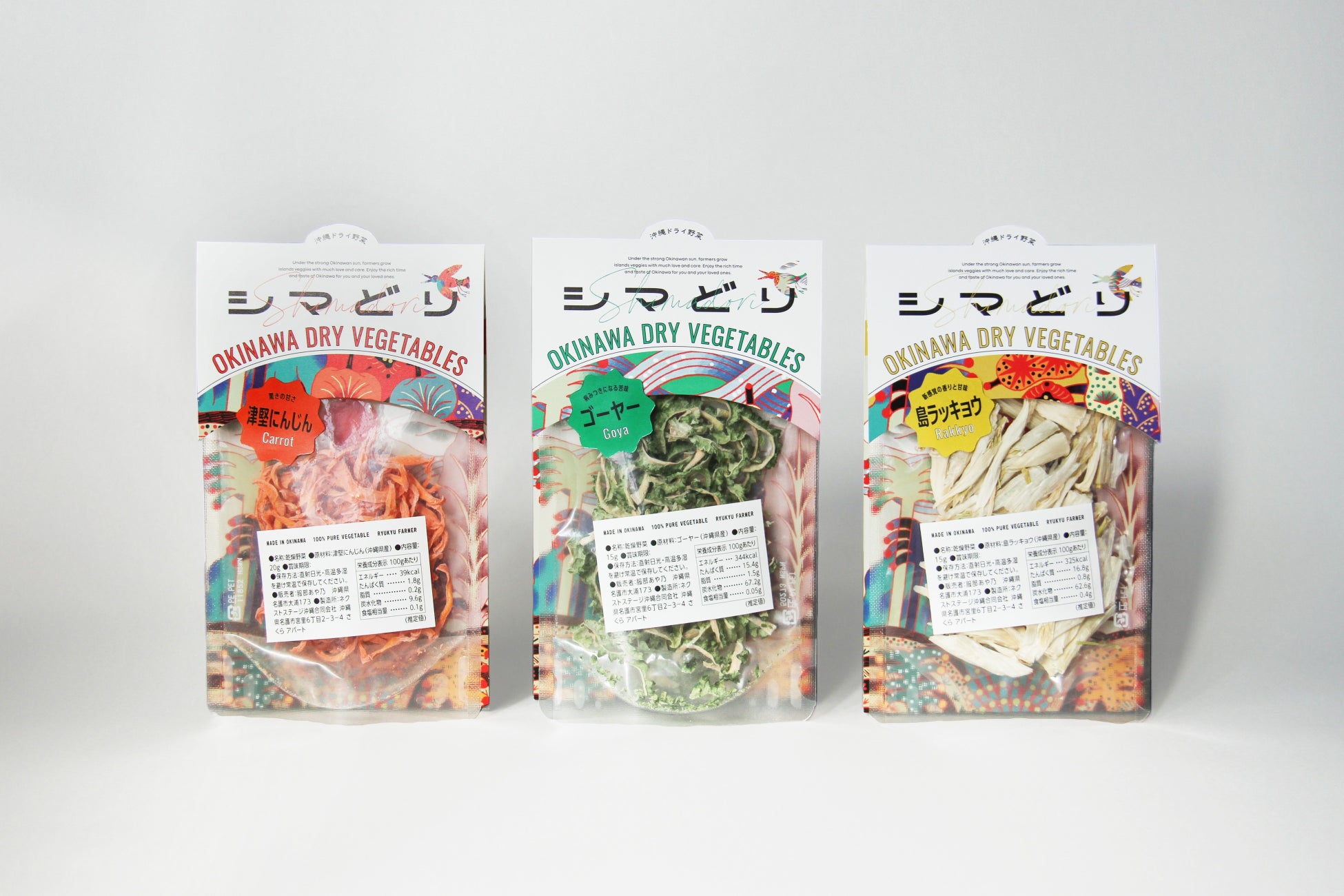 「シマどり」という名前は「沖縄の魅力をトリが運んでいく」「島の採りたて」の美味しさをそのまんまお届けするという意味です。沖縄の太陽と土のエネルギーを受けて育った力強い島野菜の旨味と栄養素をドライにすることで凝縮しています。また手軽に沖縄の野菜を届けたいという想いを汲み取り、乾燥にすることで、「軽さ」と「保存」の課題をクリアしました。