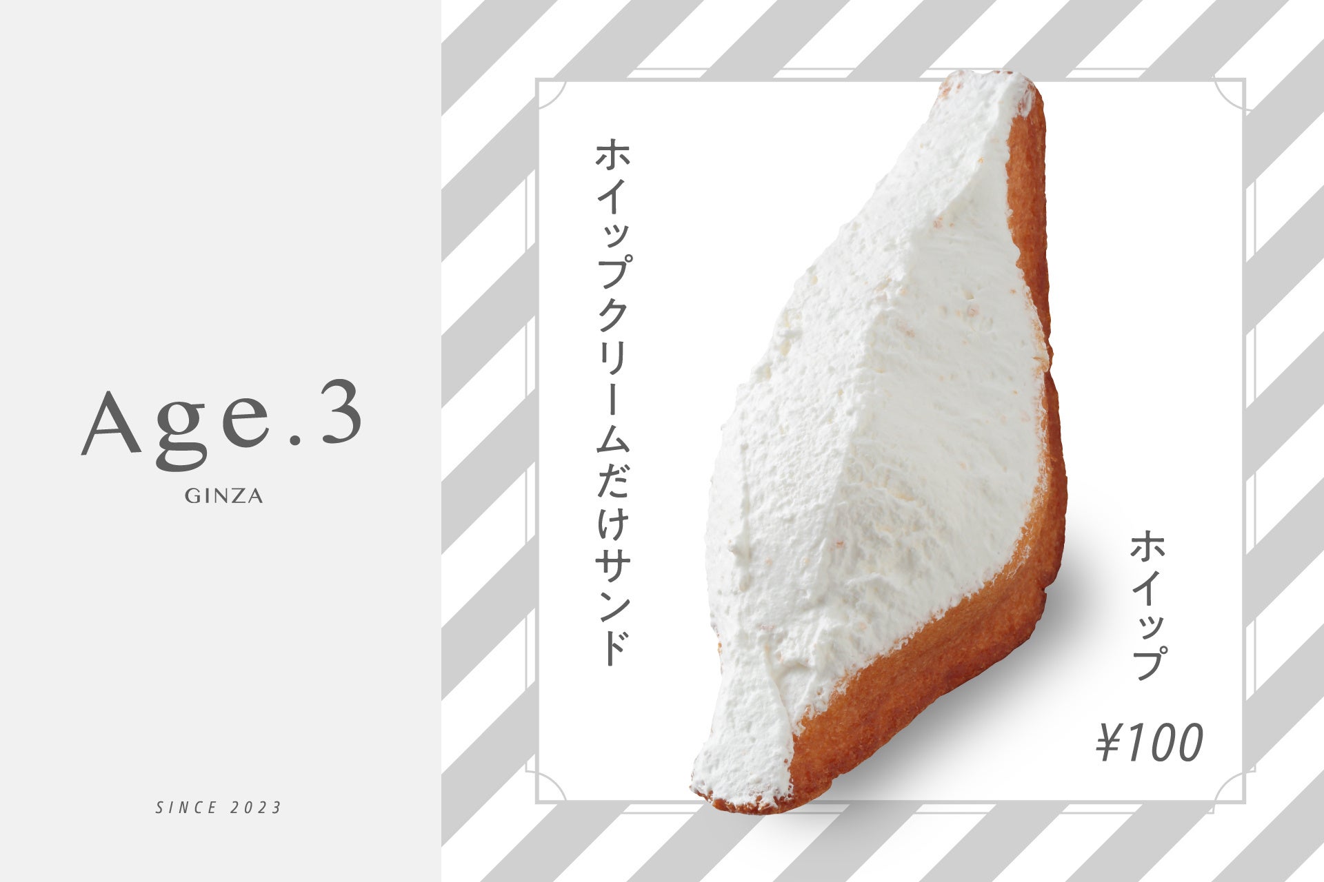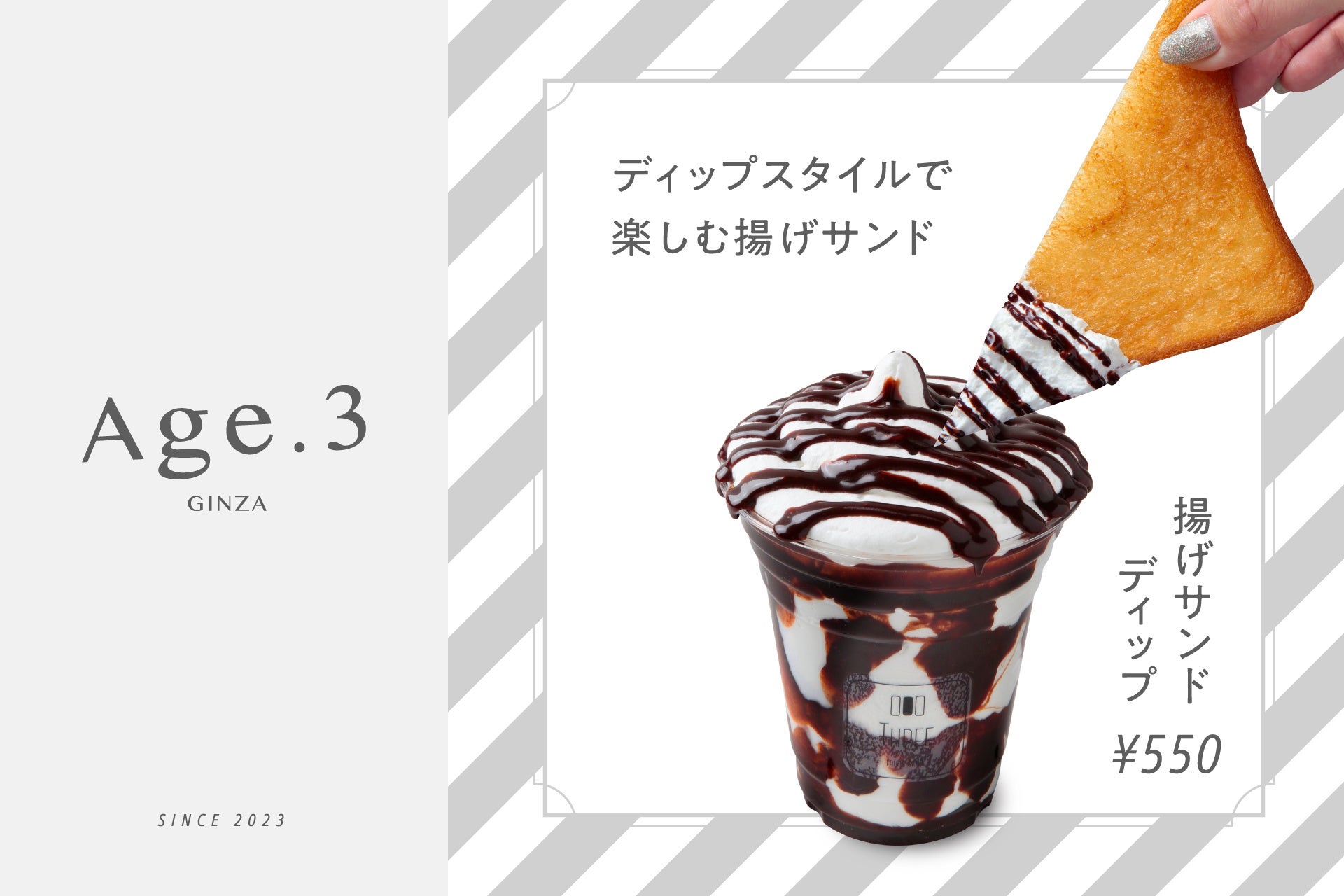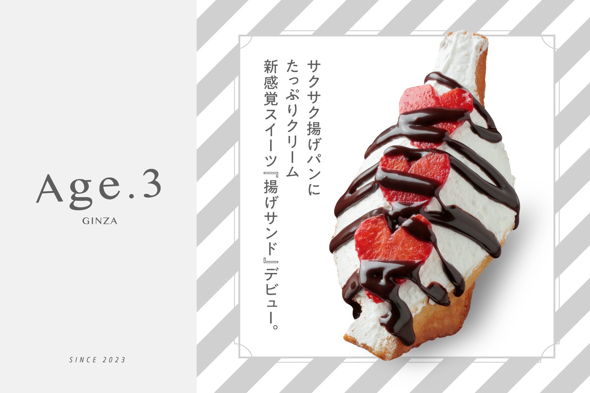 この度、福岡のフルーツサンド専門店 【FRUITS SAND THREE(フルーツ サンド スリー)】は、人気商品の『揚げサンド』を専門に提供するお店として、揚げサンド専門店 【Age.3(アゲサン)】を12月13日(水)銀座1丁目にオープンしました。