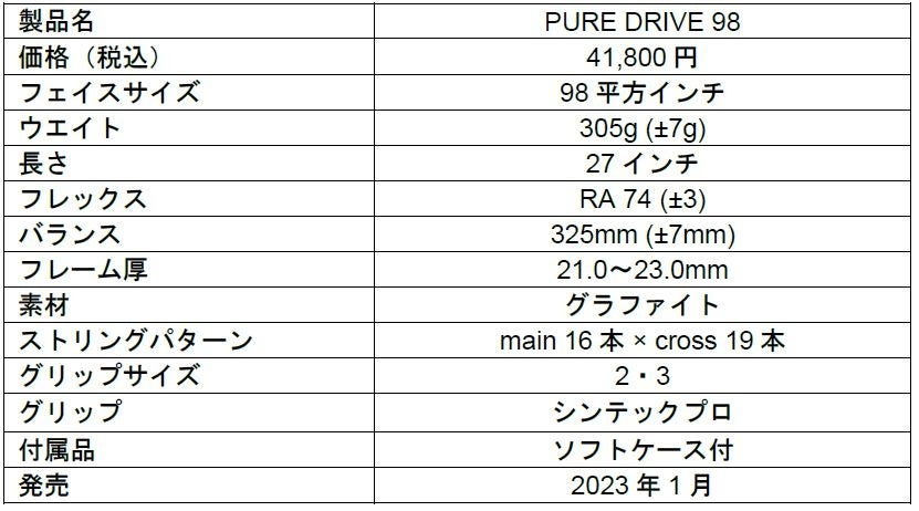 【PURE DRIVE】シリーズの新製品「PURE DRIVE 98」は、パワーと精密性の最適なバランスを実現しながら、優れた安定感が特徴のラケットです。