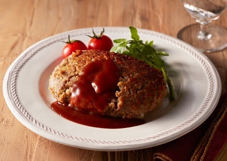 ⑤ 器にミニトマトとクレソンを添えてハンバーグをのせてソースをかける。