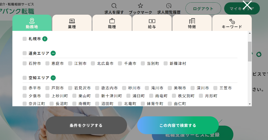■求人検索では北海道179市町村の勤務地+フルリモートの項目を新設!更に職種や特徴での条件も増やし、詳細な設定し希望に合った求人が見つけやすくなりました。