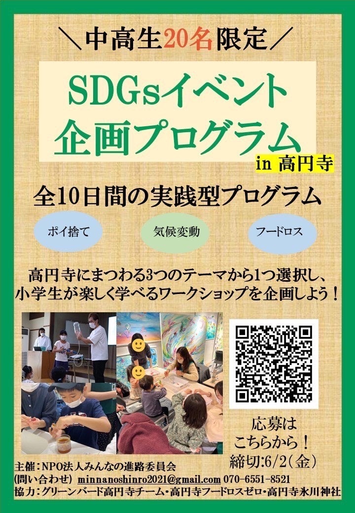 【中高生20名限定】SDGsイベント企画プログラムin高円寺