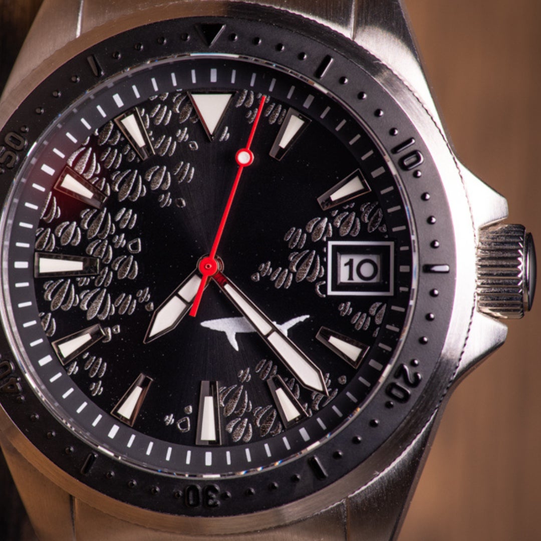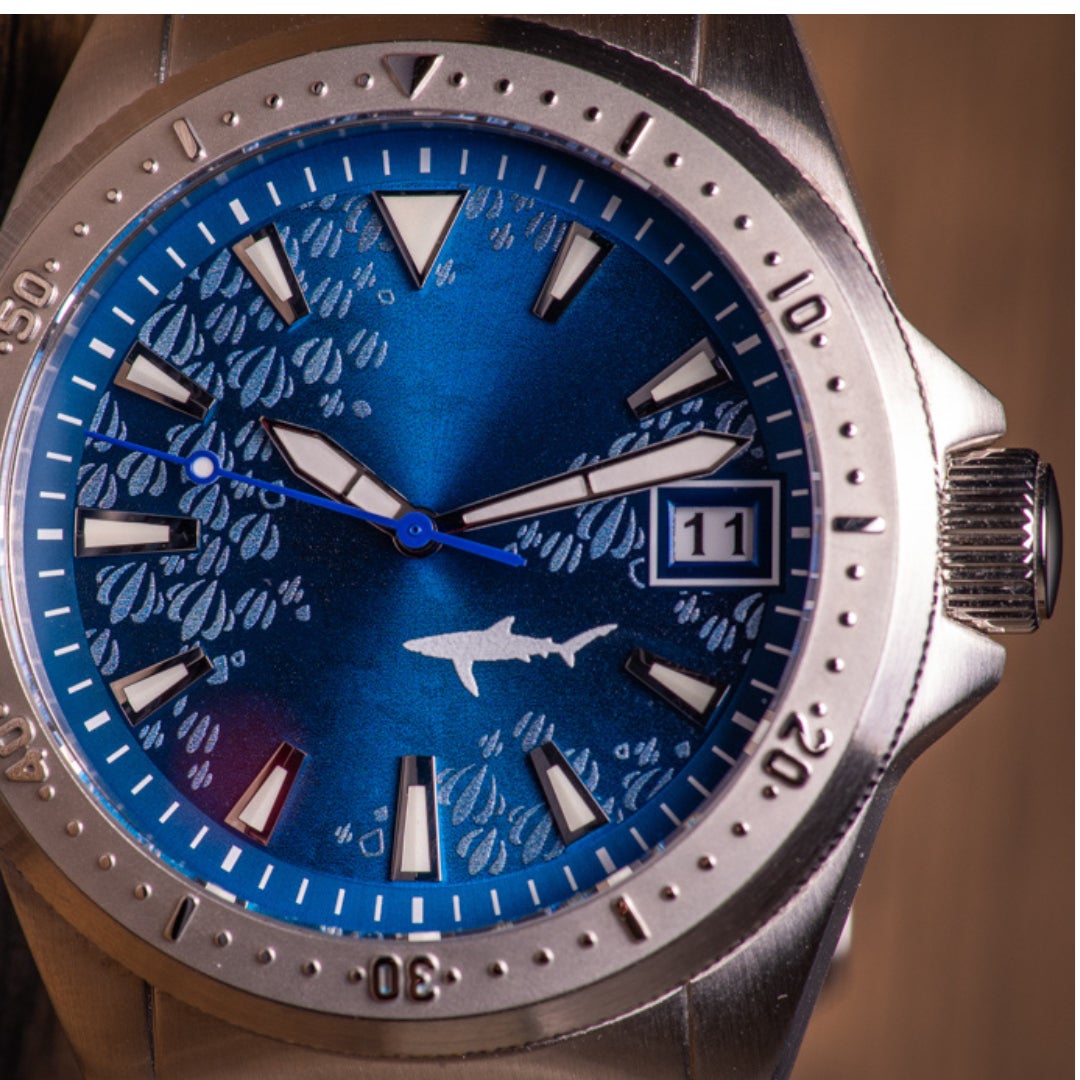 気仙沼産サメ革を使用した美しい腕時計。サメから着想を得たデザインでチャンスを逃さない!日本の熟練職人の技が宿る国産ダイバーズウオッチ新登場!