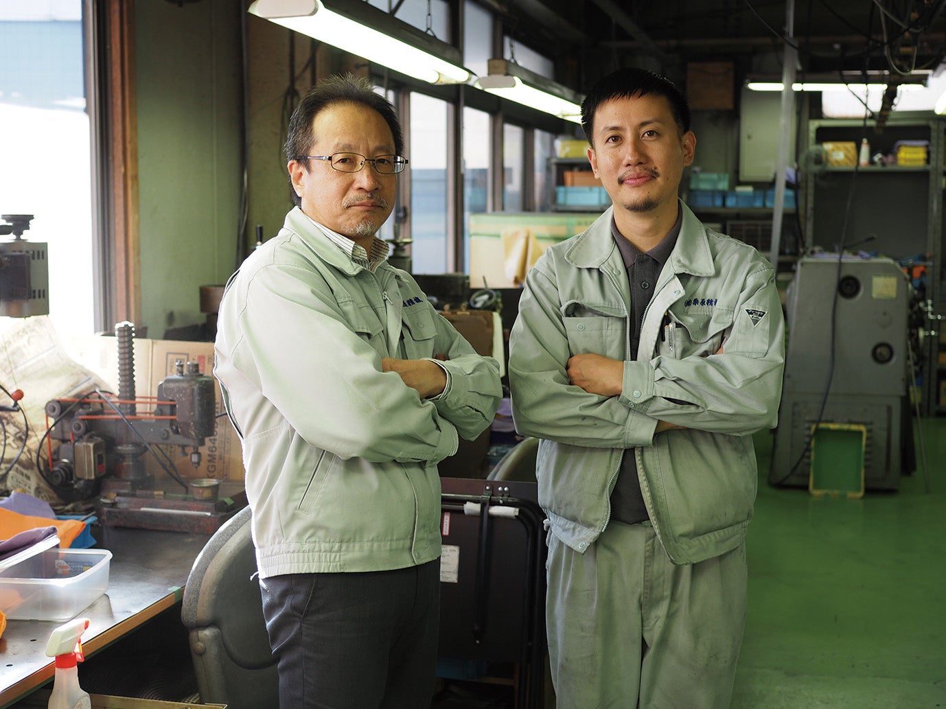 (株)栗原精機の栗原稔社長と3代目承継予定の匠さん。オリジナルの文具、アウトドアギア、アーティストとのコラボ製品も手掛ける。感性と精度で多方面からの信頼も厚い。