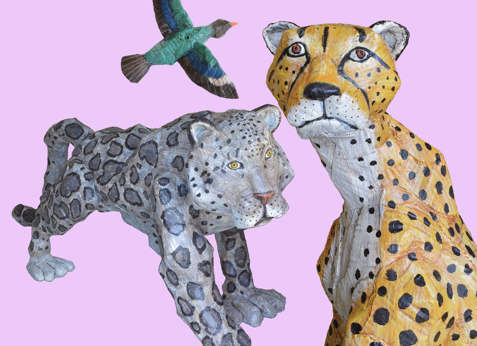 本展では、自然豊かな戸越公園に面したエコルとごしのコミュニティラウンジやエントランスの各所に、チーターやユキヒョウ、コウロコフウチョウなど、今にも動き出しそうな個性的な動物たち、大小あわせて約25体が登場します。期間中はスタンプカードを配布し、カードを持って歩きながら、会場にいる動物たちを探してみるのも楽しみ方の一つです。