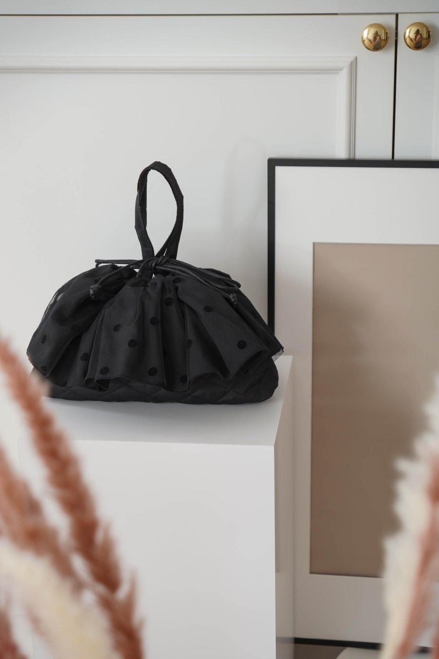 チュールドットフリル キルティング巾着型バッグ