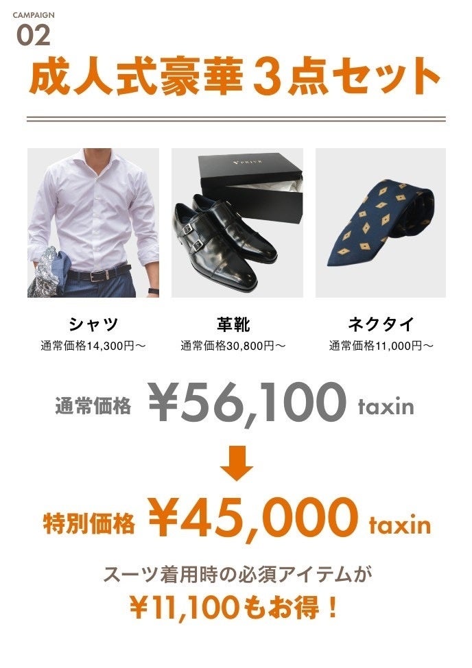 スーツ着用時の必須アイテム3点セットが特別価格で購入可能!