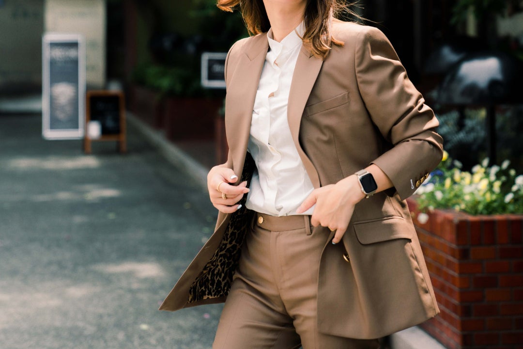 近年スーツで成人式参加される女性も増加中。お好きな色で目立つこと間違いなし!
