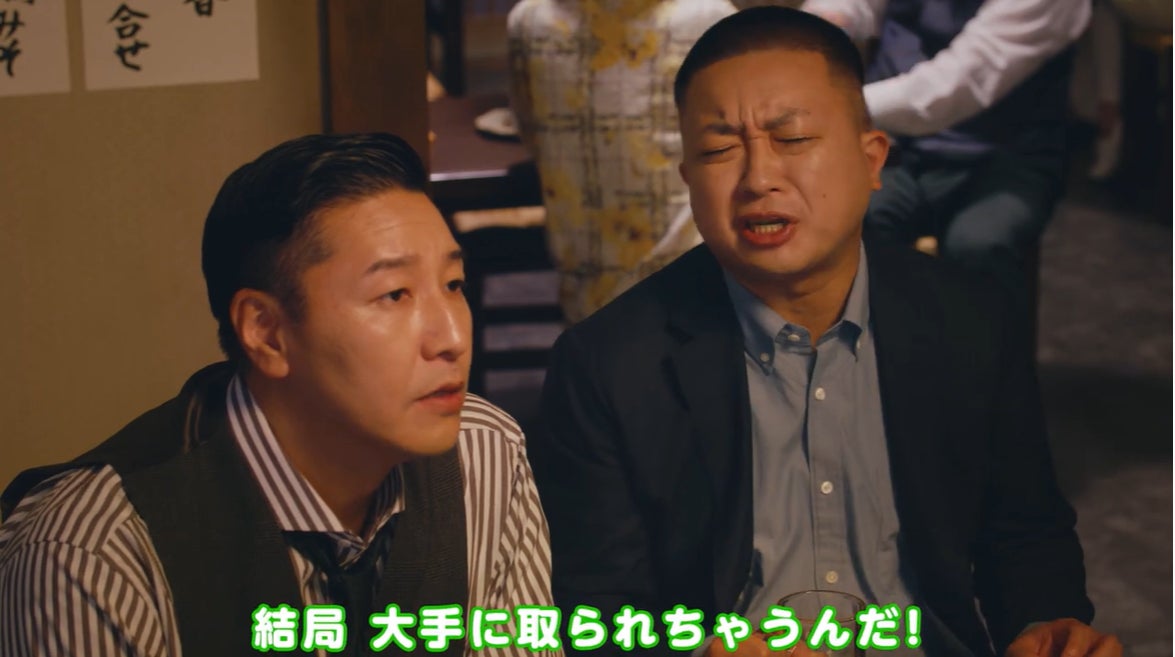 今回のCMは、チョコレートプラネットの長田庄平さんと松尾駿さんが企業の採用担当者に扮して居酒屋でビールを片手に語り合う場面からスタート。