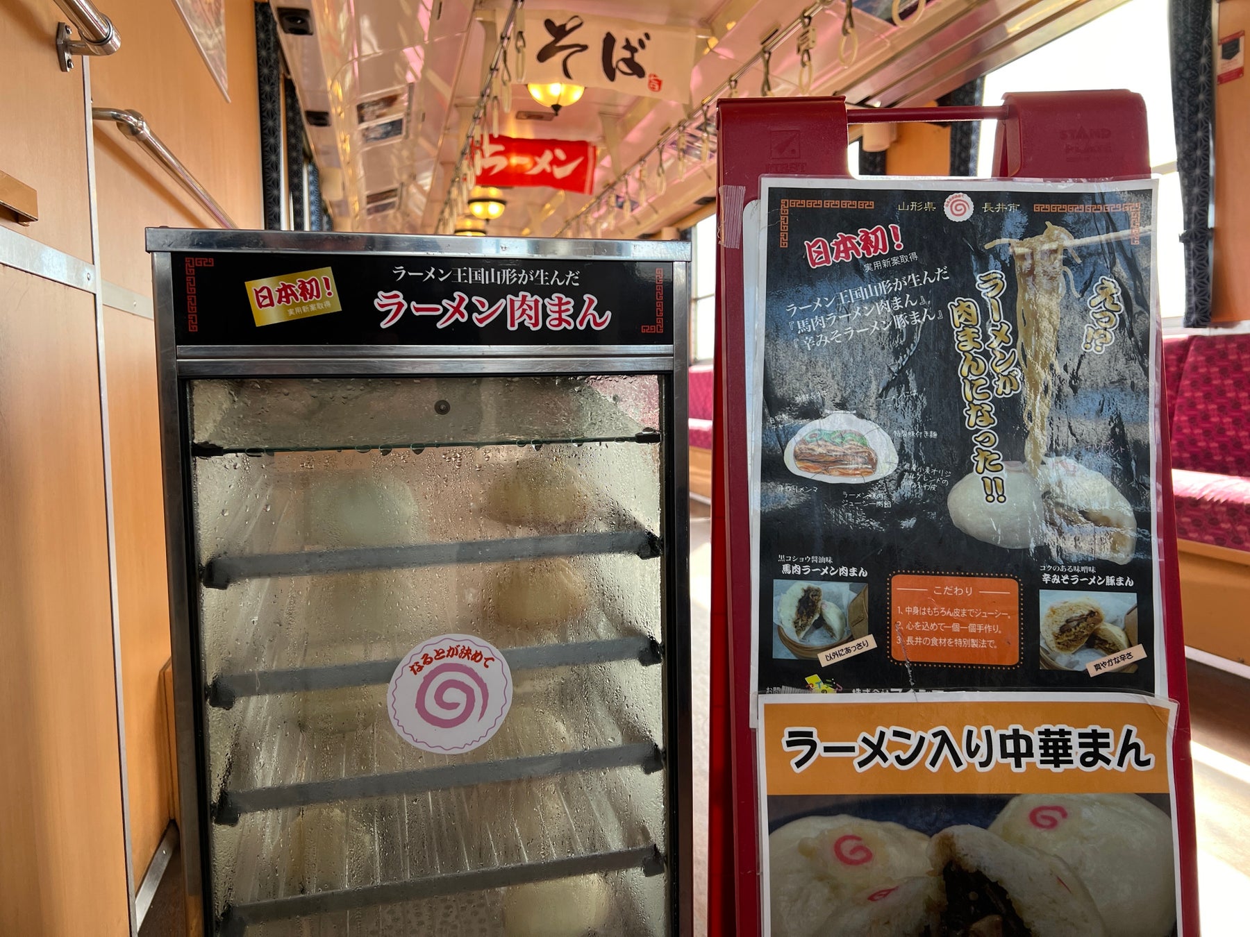 15:18 赤湯駅着 お土産には、ほっかほかの「馬肉ラーメン肉まん」をお持ち帰りください!
