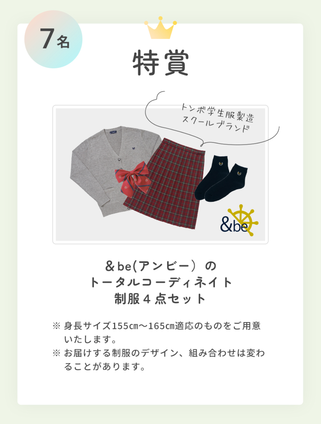 【特賞 7名】トンボ学生服製造スクールブランド「&be(アンビー)」の制服4点セット