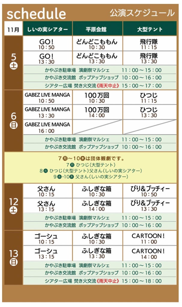 11/8(火)…公演(一般及び学校団体観劇のみ)