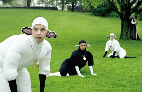 カナダのダンサーたちが、まるで本物のようなひつじになって生態を演じて観客を驚かせ、