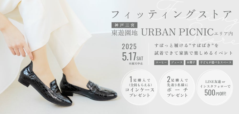 神戸の婦人靴メーカー、株式会社あとりえ岡田(神戸市長田区、代表取締役 岡田洋児)は、オリジナルブランド「NEUTRAL(ニュートラル)」で大人気の「すぽばき」シリーズのパンプスやローファーを無料で自由に試着できる、「フィッティングストア」を5月17日(土)に神戸三宮で開催します。