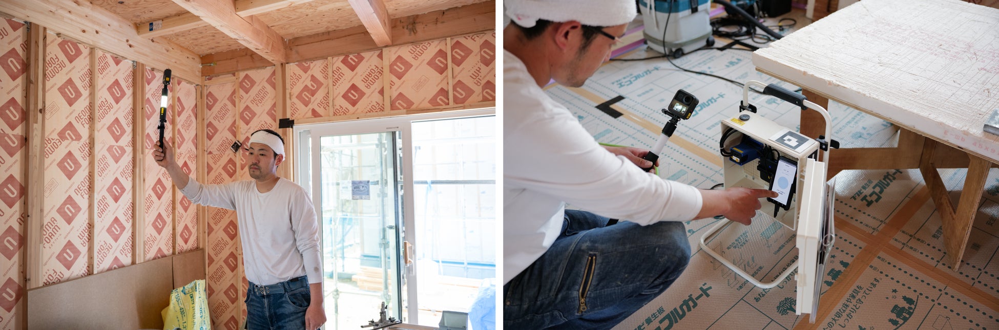 大工さんへの説明は簡単で、30秒くらい説明して終わっています。スマートフォン操作に慣れていない自分の父親ぐらいの年齢の大工さんでも、アプリの音声案内を聞いて撮影してくれています。