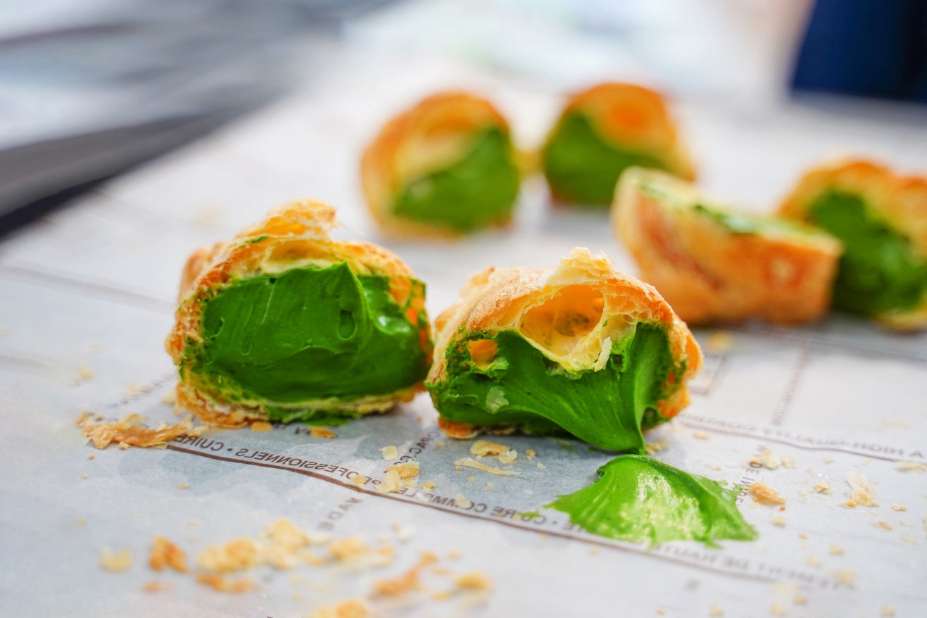 静岡県産一番茶を1個あたり約5gも使用した「和紅茶シュークリーム」。