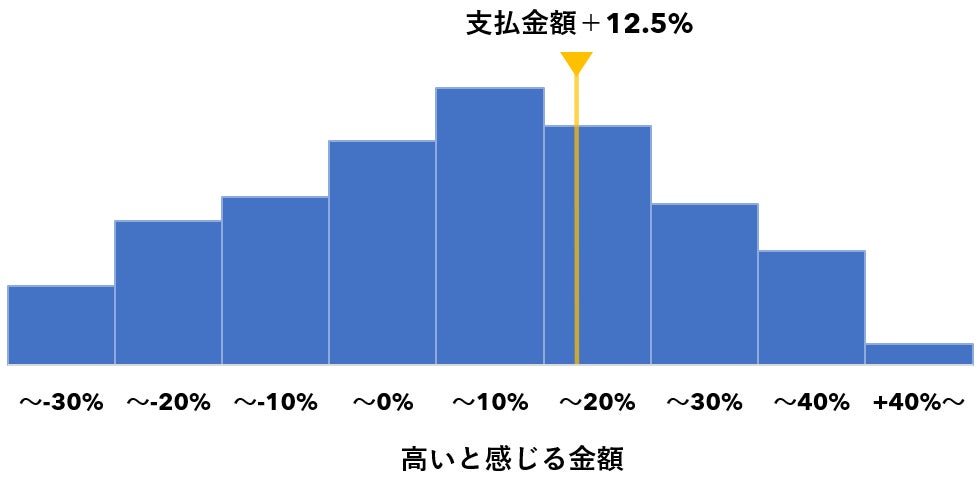 - お客様が高いと感じる金額は、平均で「支払金額+12.5%」