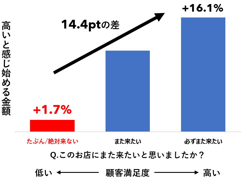 - 一方、満足度が低いと+1.7%の値上げでも「高い」と感じられてしまう