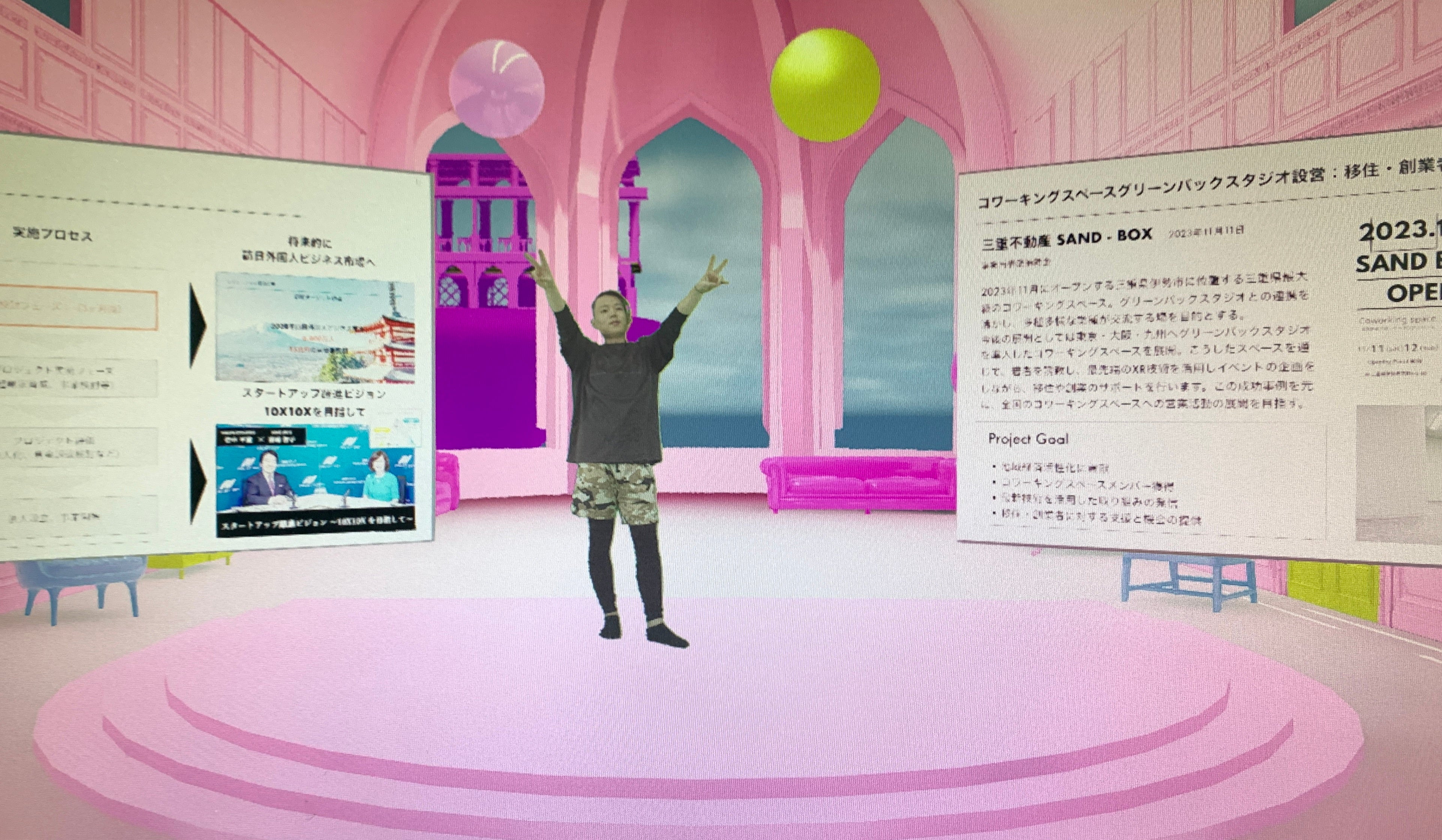 また、alphaspaceの提供するXR空間を活用して、プレゼンテーションやエンターテイメントの活用ができるようにキーボード操作のみで簡易的な演出ができるように設定を行い、地元企業や利用者が扱いやすいような設計にしています。