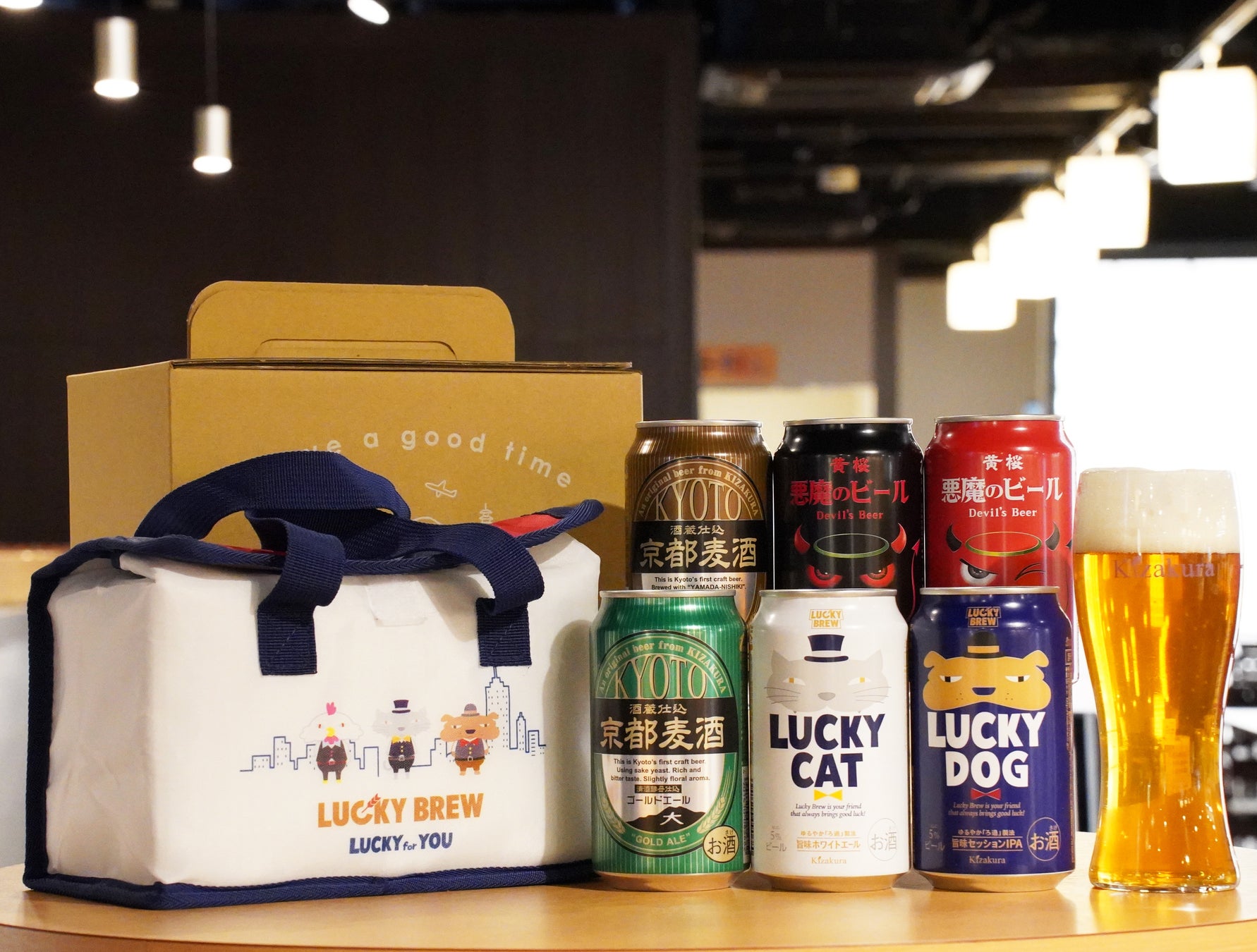 限定セット詳細:LUCKY CAT、LUCKY DO、悪魔のビール レッドセッションIPA、悪魔のビール アメリカンブラックエール、京都麦酒 ゴールドエール、京都麦酒 ブロンドエール各350ml×1本、LUCKY BREW保冷バッグ(350ml缶×6本収納) 1個