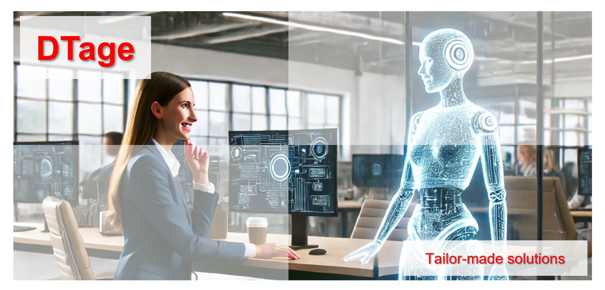 展示では、当社の最新サービス「DTage(※)」をご紹介します。ロボットがAIを活用して人と自然なコミュニケーションを行い、各種センサーを通じてデータを取得します。このデータはAIで分析され、ブロックチェーン技術を用いて安全に記録されます。これにより、セキュリティとプライバシーを確保しながら、データの価値を最大限に引き出します。