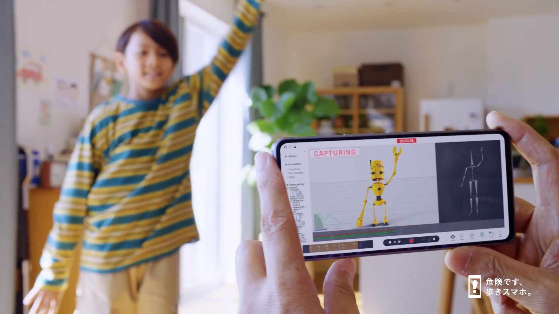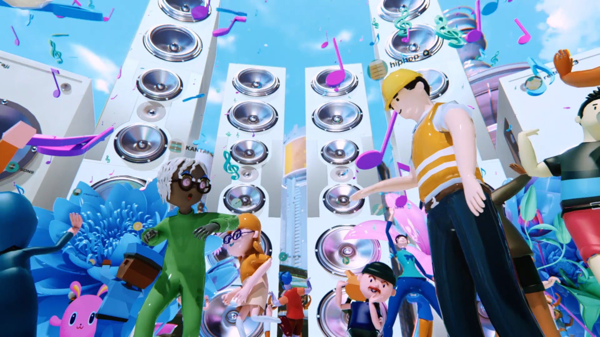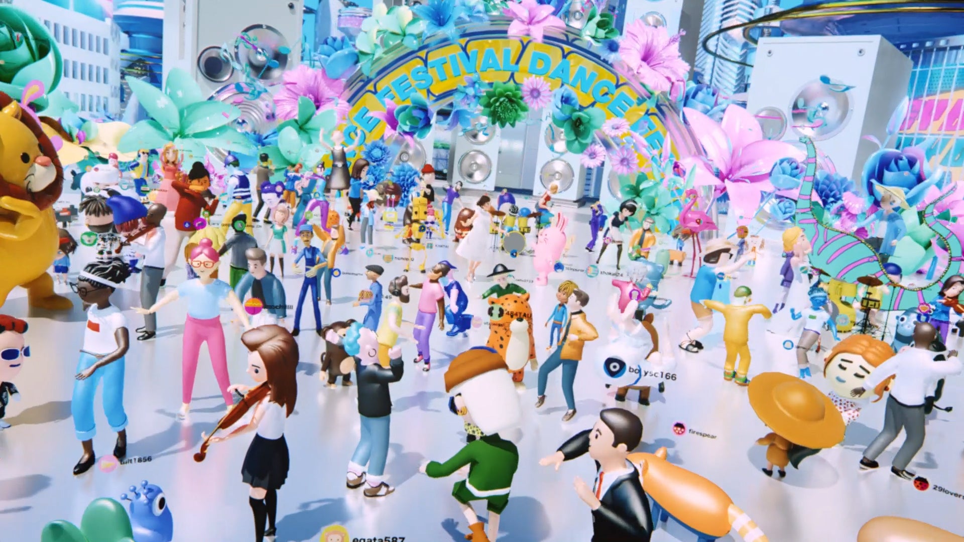 メタバースに参加するのは若者たちばかりではありません。老夫婦は、タブレットで撮影した孫のダンスをモーションキャプチャー。そのダンスは孫のアバターが踊るだけではなく、周囲のアバターたちにもインストールされていき、楽しいダンスの輪が広がります。