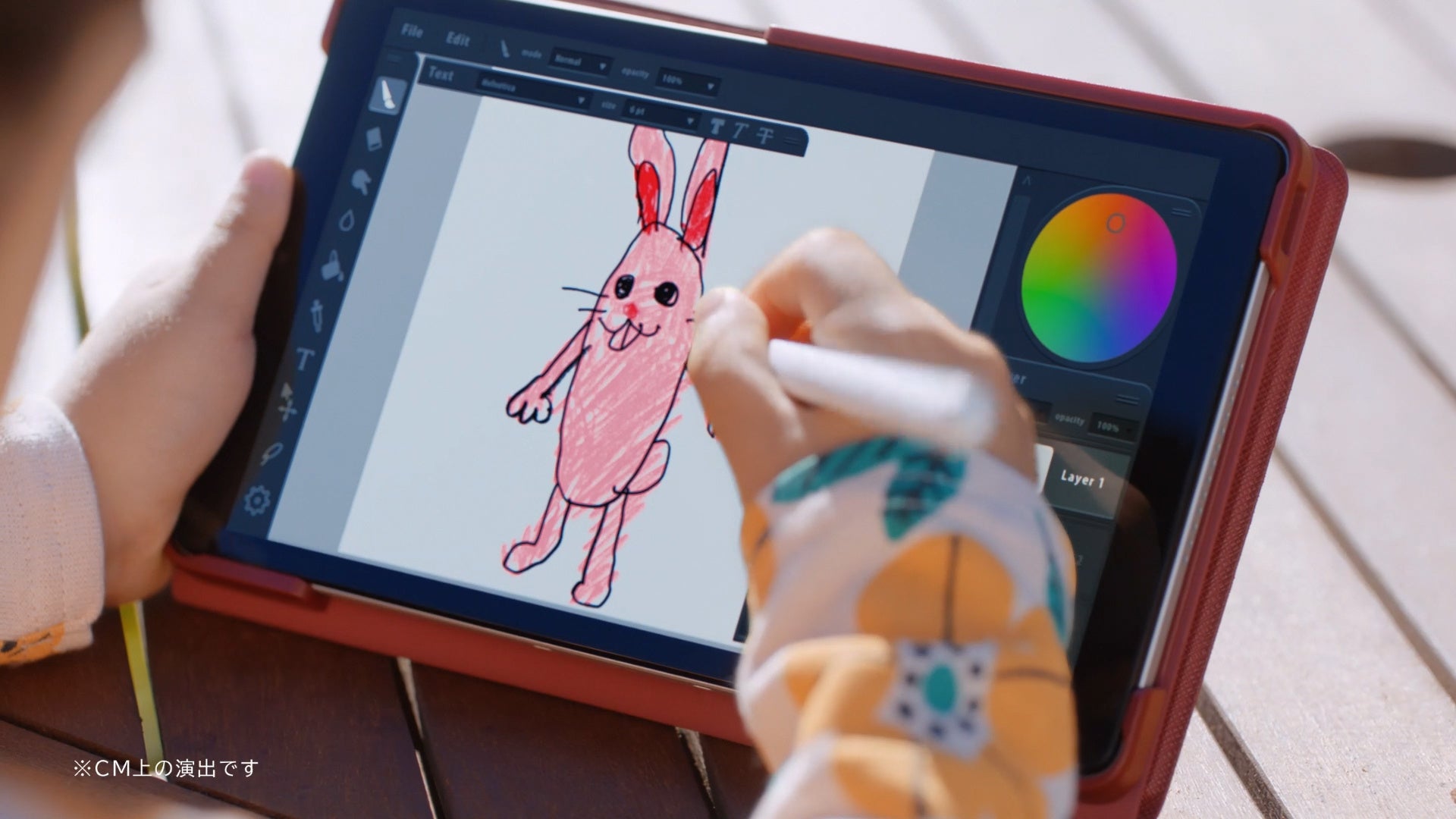 新CMでは、綾瀬さん自らがアバターとなってメタバースに飛び込みます。現実ではできなかったことができるようになるメタバースでは、子どもがタブレットで描いた絵が3Dアバターになり、女性が描いたデザインがCGになって装飾され、男性が自宅でタブレットで作曲した楽曲が空間に流れはじめ、さらには、孫のダンス動画からスキャンした動きをアバターが真似るなど、老若男女を問わない人々が、綾瀬さんのアバターとともに、メタバースで盛り上がる様子を描き出します。