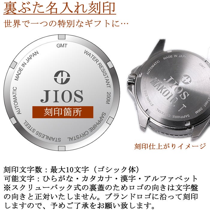 日本の時計のはじまりでもある水時計などを生み出した「滋賀県大津市の石山」に由来し、Japan,Ishiyama,Otsu,Shigaの頭文字から名付けられた腕時計の新ブランドJIOS。JIOSの作る高品質で高い精度の日本製の腕時計を通じて日本のモノづくり、さらにはJIOSの地元地域を世界へ発信し地域ブランドの確立と、腕時計ブランドとしての成長の二刀流を目指す新しい取り組みを行います。腕時計が地元地域と世界をつなぐ懸け橋となるよう日々丁寧で正確な時計造り、モノづくりを行っています。