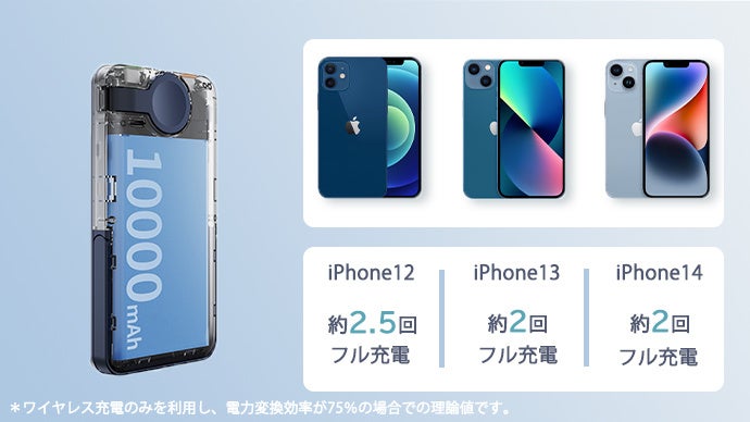 Mytteは、機内にも持ち込める10000mAhの大容量を持ち、満タンの場合、iPhone12を約2.5回、iPhone13を約2回もフル充電できます。外出の際に最適な容量です。