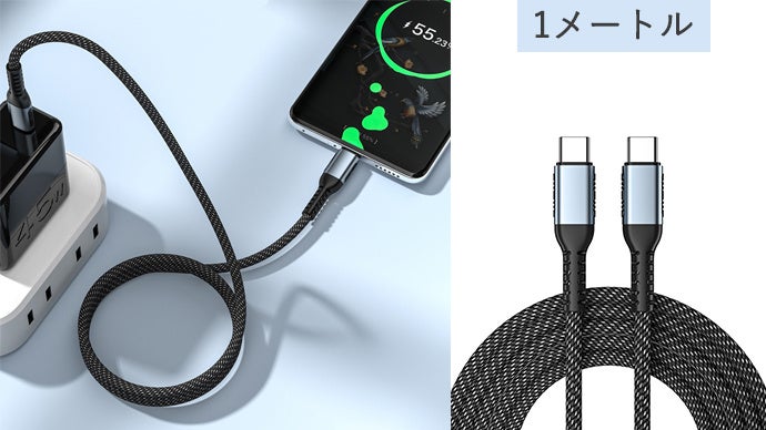 また、有線充電機能を活用したい方にも、USB-C to USB-C ケーブルを用意しております。最大100Wの出力に対応し、Mytteの利用はもちろん、普段の充電、データー転送にも役立ちます。
