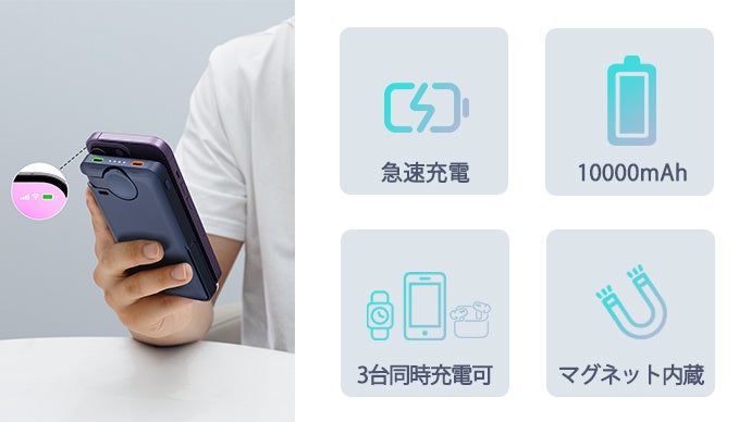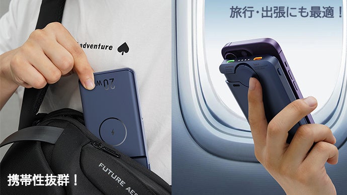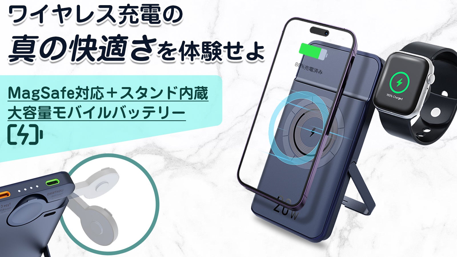 【新商品】「落ちない」ワイヤレス充電を!安心感ばっちりの2-IN-1MagSafe対応モバイルバッテリー
